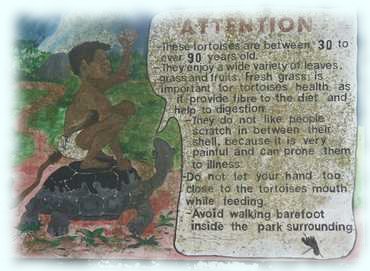 Das Schildkrötengehege ist im hinteren Teil von den typischen Granitfelsen abgegrenzt. Im gesamten Gehege befinden sich sicher mehr als 20 Schildkröten von jung bis alt. Das nette ist, füttern ist erlaubt und davon wird auch liebend gerne von den Touristen Gebrauch gemacht: