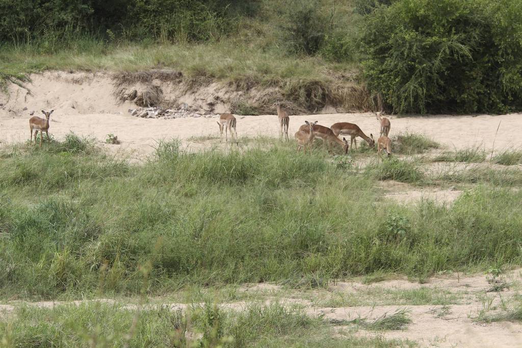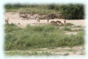 Die üblichen Verdächtigen tummeln sich wieder zur Genüge im hohen Gras: Kudus (etwas seltener) und Impalas (in rauhen Mengen). Dazwischen auch seltenere Tiere, wie z.B. das Warzenschwein oder ein Nilpferd.