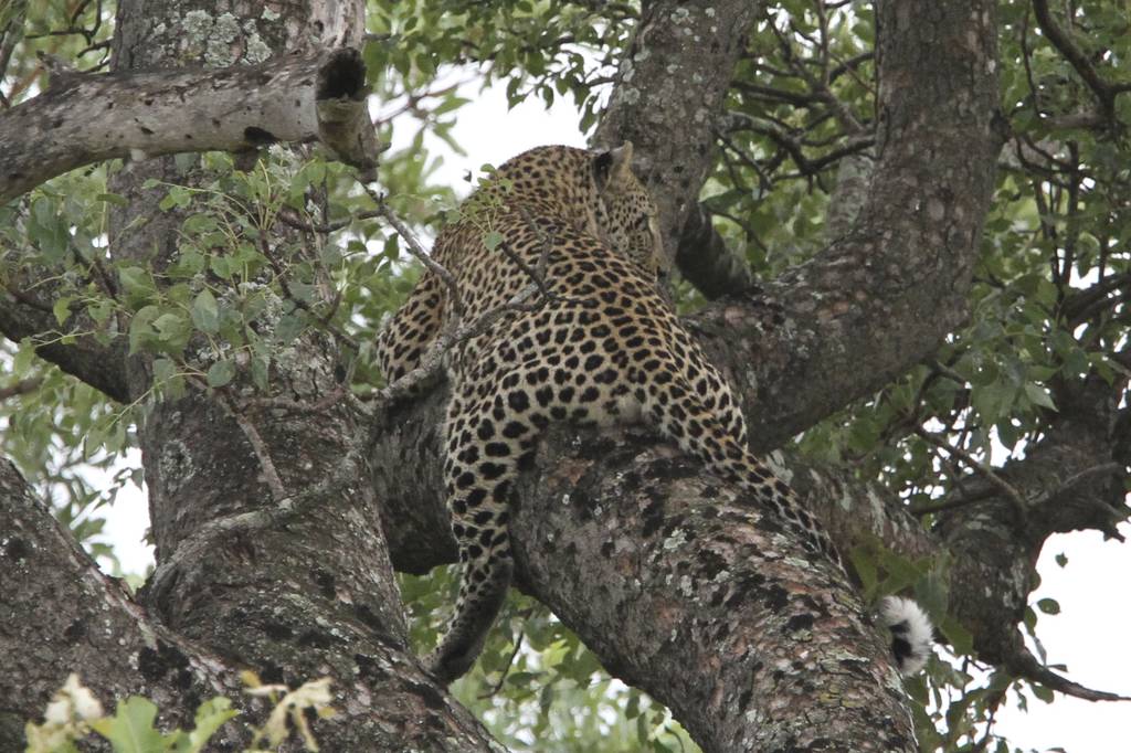 Leopard vielleicht auf einen Baum kletter, aber es war nix zu machen.
